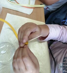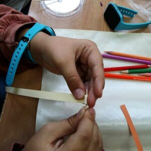 U drugom delu, deca su namotavala papirne trake različitih dužina, širina i boja oko čačkalice. Na taj način su dobila po jedan veći namotaj, koji je sa osloncem na čačkalici stvorio čigru. Tako su pokazala spretnost svojih prstića, istrajnost i strpljenje.